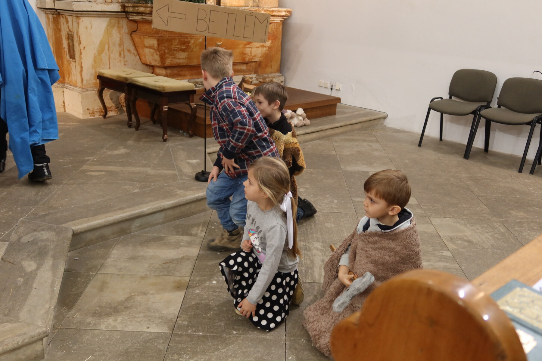 A protože někteří ze současných rodičů ve schole zpívaly jako děti, vzpomněli si na „vánoční muzikál“, co kdysi sami nacvičili pod vedením paní Jitky Kráčmarové. Jedná se o dílo německé skladatelky Helly Heizmann z roku 1991, které do češtiny přeložil Pavel Mareš. A že to vzpomínání bylo pěkné, rozhodli se nabídnout podobně hezký zážitek ze společného tvoření i svým dětem a nám ostatním.